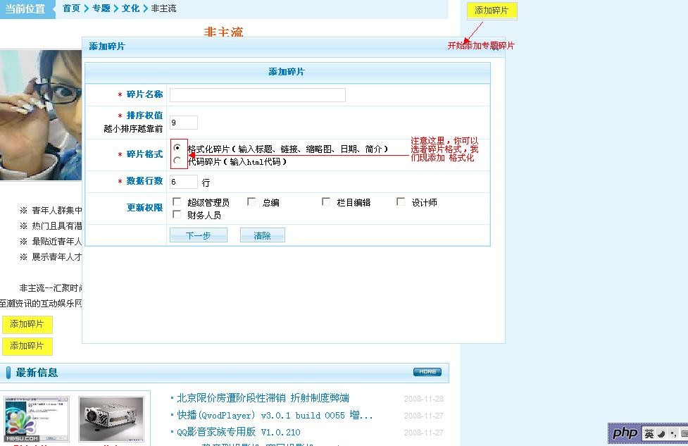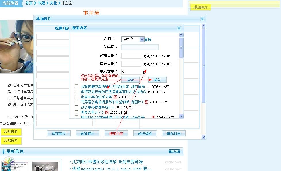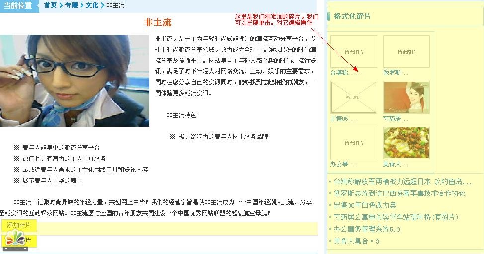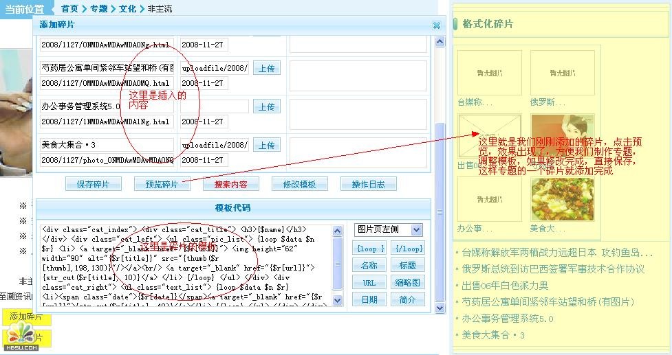 專題的碎片添加完成:現(xiàn)在我們要在前臺(tái)預(yù)覽一下,要現(xiàn)更新一下專題. 位置:內(nèi)容管理---生成HTML--更新專題頁(yè)